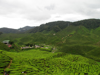 Cameron Highlands - czyli wieksze krzaki niz Indonezja. Te efektowne laciate wzgorza to plantacje herbaty. Calkiem smakowita musze przyznac.