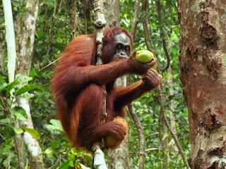 DNA orangutana jest w 95% takie same jak czlowieka. Jesli chodzi o inne podobienstwa, to zupelnie tak jak ludzie, jesli zaoferujesz im darmowy posilek to leca jak dzik w zoledzie:) Nie zmienia to faktu, ze  dysponuja one wyzsza kultura osobista, niz niektorzy przedstawiciele naszego gatunku;) A tak powaznie, to rezerwat zostal stworzony by wspomagac proces rozrodczy gatunku i przetrwanie malych, poniewaz male sa dlugo zalezne od matki, a sama samica wydaje potomstwo tylko kilka razy w zyciu. W kazdym razie, fajne stwory:)